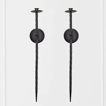 Show more Introducing the Remenna Large Wall Candle Holder Set, an exquisite addition to your home decor that seamlessly blends functionality with timeless elegance. Crafted from durable twisted metal and finished in a sleek black powder coat, these candle holders are not only built to last but also designed to elevate any space. Each piece in this set of two boasts a sculptural silhouette that draws the eye and enhances the visual landscape of your home, making it an ideal centerpiece for any room.