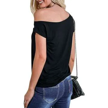 Remidoo Women Casual Off Shoulder Tops Sun and Moon Print Short Sleeve T Shirt Graphic Tees Black Sun Moon-c Medium