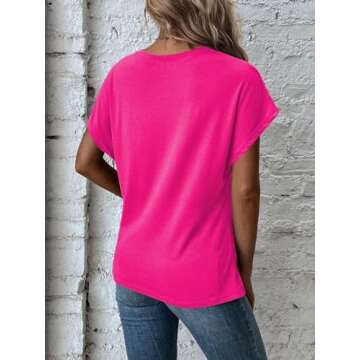 Designed with a flattering **asymmetrical hem**, this short sleeve tunic top brings out your best features while providing the ultimate comfort for daily wear. The crew neck and batwing sleeves enhance its chic style, making it versatile enough to wear on various occasions, whether you're heading to the office, out with friends, or enjoying a relaxing day at home.