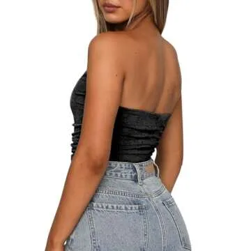 Show more Step into the spotlight with the Remidoo Women's Ruched Strapless Push Up Bustier Corset Crop Top, your must-have accessory for any fashionable outing. This exquisite piece combines elegance and comfort, perfect for elevating your party or clubwear ensemble. Designed with a flattering ruched effect, this strapless, push-up bustier provides exceptional support and style. The bandeau tube top design hugs your curves while ensuring that you feel confident and chic all night long. Crafted from high-quality materials, it is not only lightweight but also breathable, making it suitable for long hours of wear.