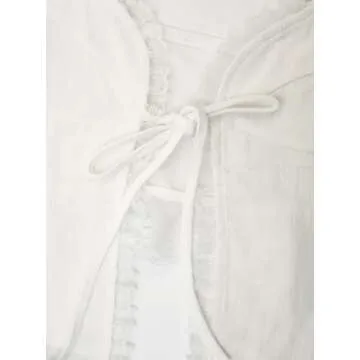 Show moreDiscover a blend of elegance and allure with the Remidoo Women's Sexy Lace Trim Open Front Self Tie Cami Crop Top in pristine white. This stunning cami crop top is designed to enhance your wardrobe with its delicate lace trim and unique open-front style, making it a must-have addition for any fashion-forward woman. Crafted from high-quality materials, it promises both comfort and style. The self-tie design allows for adjustable fit, ensuring you can flaunt your figure in the way that suits you best. Whether you are heading out for a night on the town or enjoying a relaxed day out, this versatile crop top can be dressed up or down, perfectly suited for any occasion.