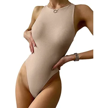 Show moreThe Remidoo Women's Sexy Sleeveless Bodysuit is your ultimate wardrobe essential that seamlessly blends comfort and style. Crafted from a luxurious blend of soft, stretchy materials, this bodysuit features a stunning round neck design paired with daring cut-outs at the back, showcasing an alluring backless style that is perfect for alluring outfits. Available in a radiant apricot color, it stands out while complementing any skin tone, making it an ideal addition to your collection for various occasions.