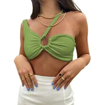 Remidoo Women's Sexy Sleeveless One Shoulder Crop Top O Ring Strappy Cutout Cami Tank Tops LightGreen Small