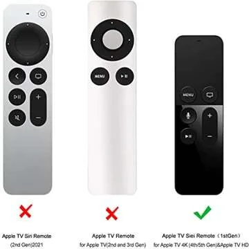Show more If you're tired of losing your Apple TV remote or fumbling with it in the dark, the Akwox Apple TV Siri Remote Cover Case is just what you need! This smartly designed silicone cover fits perfectly over the Apple TV 4th, 5th, and 4K generation Siri Remote, providing not only a snug fit but also a stylish upgrade.