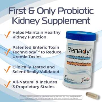 Renadyl Kidney Probiotic Supplement | Urea, Creatinine, & Uric Acid Support | 45 Billion CFUs | Clinically Tested, Non-GMO, & Made in USA, 180 Capsules (3 Bottles, 3 Month Supply)