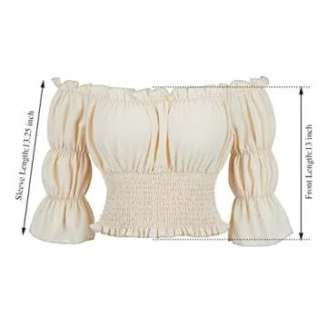 Renaissance Shirt Women Pirate Costume Womens Pirate Shirt Outfit Renaissance Blouse Crop Top Beige-L