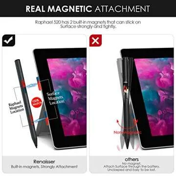 Show moreIf you are seeking a versatile stylus that enhances your creative and productivity experience, look no further than the RENAISSER Stylus for Surface Pro/Go. This exceptional tool is not just a pen but a game-changer designed specifically for Surface devices including Surface Pro 3 through 7, Surface Go, Surface Book, and more. With its streamlined shape, it fits comfortably in your hand, making it perfect for long drawing sessions or note-taking marathons. Equipped with 4096 pressure points, the stylus delivers precise control over your strokes and artwork, ensuring a seamless transition between light and bold lines. The magnetic attachment allows for convenient storage on the side of your device, keeping it within easy reach while also lending an air of sophistication to your setup. Quick to recharge and featuring palm rejection technology, this stylus is designed to keep pace with your lifestyle, providing efficiency without sacrificing quality.