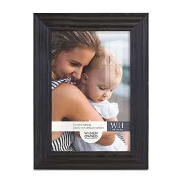 Renditions Gallery 4x6 inch Picture Frame Modern Style Wood Pattern and High Definition Glass Ready for Wall and Tabletop Photo Display, Black Frame
