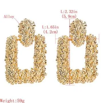 RENIKO Geometric Earrings for Women Square Dangle Pendant Vintage Exaggeration Big Square Hoop Earrings
