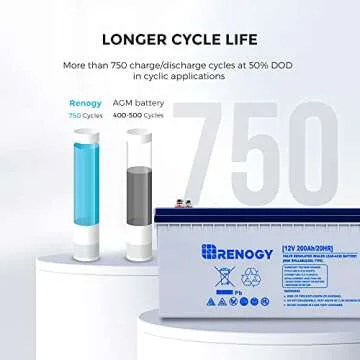 Renogy 12V 200AH Rechargeable Deep Cycle Hybrid GEL Battery for Solar Wind RV Marine Camping UPS Wheelchair Trolling Motor, Maintenance Free, Non Spillable