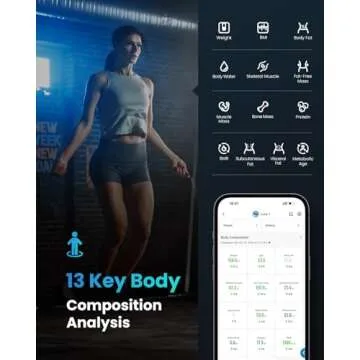 The scale uses advanced bioelectrical impedance analysis (BIA) to measure key metrics such as body fat percentage, muscle mass, BMI, and more.