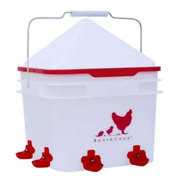 RentACoop 2 Gallon Chicken BPA-Free Plastic Bucket Waterer Set with 4 Horizontal Nipples - Corner Placement