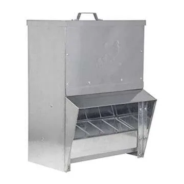 RentACoop Galvanized Chicken Trough Feeder, Weatherproof Poultry Food Dispenser with Lid 25LB Capacity