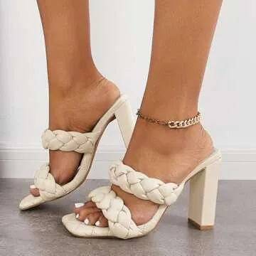 Reoplty Women's Square Open Toe Braided Sandals Backless Two Strap Block Heels Slip On Slides…