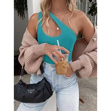 REORIA Butsmooth® Women's Trendy Sexy Plunge One Shoulder Sleeveless V Backless Going Out Tank Bodysuits Tops