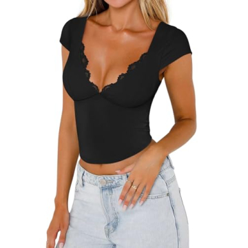 Show moreIntroducing the breathtaking REORIA Crop Top for Women, a must-have addition to any fashion-forward wardrobe. This stylish top features a stunning corset line and delicate lace detailing around the bust, designed to effortlessly contour your curves and provide a flattering silhouette for every body type. The low-cut V-neck design adds a sultry edge, making it perfect for a night out while maintaining an elegant touch. Made from the exclusive REORIA Butsmooth® fabric, this top is not only incredibly soft and comfortable but also boasts a double-lined construction ensuring that it remains opaque, even in classic white. Whether you’re dressing up or keeping it casual, the REORIA Crop Top guarantees to elevate your style with its chic versatility.