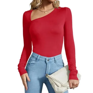 Show moreDiscover the perfect blend of style and comfort with the REORIA Women's Casual Classy Asymmetrical Neck Long Sleeve Ribbed Slimming Thong Leotards Bodysuit. This stunning bodysuit features a unique asymmetrical neckline, designed to maximize your elegance while ensuring a flattering silhouette. Crafted from fine ribbed material, this garment retains its shape beautifully and offers a soft touch against your skin. Whether you’re gearing up for a night out or a casual day at work, this bodysuit is versatile enough to suit every occasion!