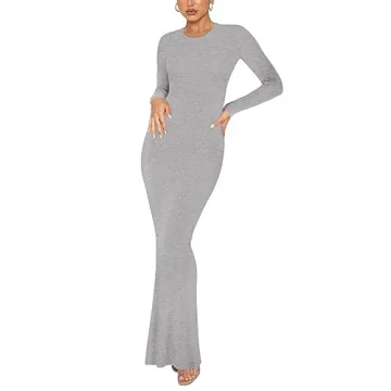 Elevate your wardrobe with the REORIA Women's Sexy Casual Crew Neck Lounge Slimming Long Dress. This elegant piece combines a delicate fish tail cut design with high elasticity fabric to accentuate your curves, offering a snug yet comfortable fit. The crew neck and long sleeve design exudes modesty and femininity, making it a versatile choice for any season. Whether you're attending a wedding, a date night, or a casual gathering, this dress promises to make you stand out with its sophisticated silhouette...