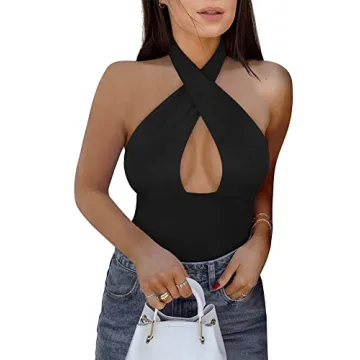 Show moreDiscover the perfect blend of comfort, style, and support with the REORIA Women's Sexy Criss Cross Halter Neck Sleeveless Party Club Night Going Out Thong Bodysuits Tops. Tailored specifically for the modern woman, this unique bodysuit allows you to feel secure even without the traditional constraints of a bra. Crafted from a thick yet lightweight material, it provides ample support while ensuring you're not sacrificing comfort for fashion. The fabric is not sheer, allowing you to enjoy a sense of confidence while flaunting your style.