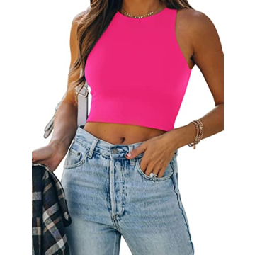 Show more Introducing the REORIA Women's Sexy Sleeveless High Neck Racerback Cropped Tank Top, your go-to wardrobe staple that effortlessly combines style, comfort, and versatility! Made from a high-quality super stretch material, this crop top holds everything in place so well that you won’t even need to wear a bra. With its clever double lining in the chest area, it provides just the right amount of support without the bulk of padding. Whether you're heading out for a night with friends or lounging at home, this tank top promises to keep you looking chic and feel fabulous!