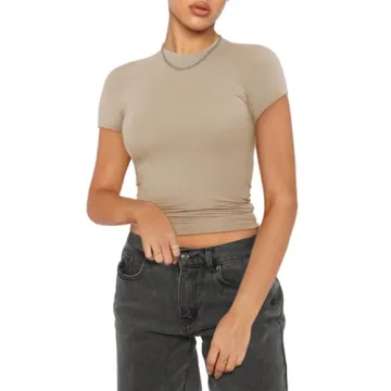Show more Elevate your summer wardrobe with the **REORIA Women's Summer Casual Basic Mock Neck Short Sleeve Double Lined T-Shirt**. This stylish crop top embraces the Y2K trend, seamlessly blending vintage elements with contemporary flair. Crafted from super soft and breathable fabric, this top is designed for comfort—keep cool even on the hottest days. The mock neck provides a chic look without feeling overly constricting, making it suitable for various occasions. Available in a variety of colors, it fits snugly yet comfortably, hugging your curves in all the right places.