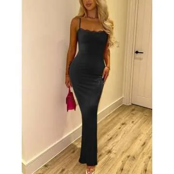 Show more Introducing the REORIA Women's Summer Casual Lace Slip Soft Lounge Long Dress, the epitome of elegance and sophistication in a casual maxi dress. Crafted from a luxurious blend of 93% Modal and 7% Spandex, this dress seamlessly combines comfort with style. Its micro ribbed fabric provides incredible softness, breathability, and stretch, ensuring it fits like a second skin. Perfect for summer, this dress enhances your silhouette and lets you move freely without feeling constricted. Available in sizes from XS to XL, this ankle-length beauty suits various body types, with features that allow you to easily adjust and scrunch it up at the waist to achieve your preferred fit.