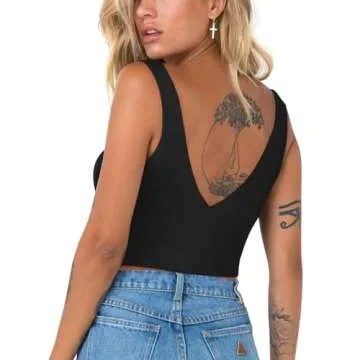 Show moreIntroducing the REORIA Women's Summer Sexy Plunge Deep V Neck Double Lined Sleeveless Backless Slim Fitted Cami – your new go-to for effortless style and comfort! This stylish cropped tank top is crafted from ultra-soft, double-layer elastic material that provides unparalleled support while highlighting your gorgeous curves. Perfectly versatile, this cami will elevate your wardrobe, whether you're dressing it up for a night out or keeping it casual for a day of lounging. Available in a range of colors and sizes, this piece ensures fully inclusive fashion; even the double denim lovers can feel confident to wear it without a bra!