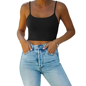 REORIA Women's Summer Seamless Adjustable Spaghetti Strap Crop Top for Active and Casual Wear