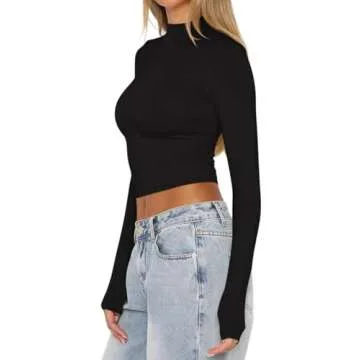 Show more Introducing a fabulous addition to your wardrobe—the luxurious long-sleeve crop top by Reoria. This stunning piece combines fashion with functionality, designed to leave you feeling confident and chic in any setting. Its double-layered torso offers excellent coverage while allowing for breathable comfort. Ideal for layering under a jacket or wearing solo, this crop top delivers a versatility that is perfect for the fall season. The mock turtleneck provides an elegant touch, elongating your neck beautifully and contributing to its stylish silhouette.