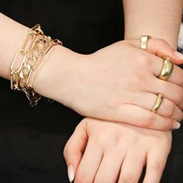 Reoxvo Cuban Curb Gold Link Chain Toggle Bracelet for Women