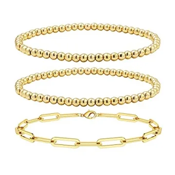 The set features a combination of three unique styles, including a chic paperclip link chain and two delightful gold beaded bracelets, each measuring a convenient 7 inches. With their elastic design, they adapt seamlessly to your wrist while allowing for versatility; wear them together for an artistic layered effect or separately for a minimalistic touch. No matter the occasion—whether it’s an important event, a day out with friends, or a simple gathering—these bracelets offer a versatile accessory option that enhances your look effortlessly.
