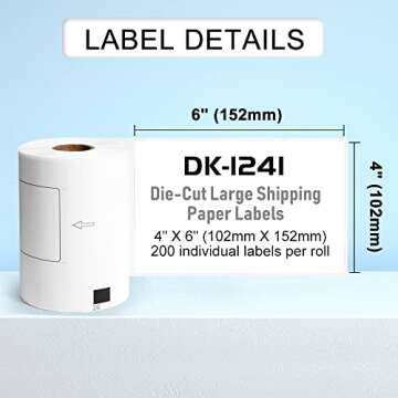 Show moreEffortlessly streamline your shipping process with our Replacement for Brother DK-1241 Die-Cut Shipping Labels. Each label measures 4" x 6" (102mm x 152mm), making them the perfect fit for detailed address labels or product tags. Designed specifically for Brother QL Label Printers like QL-1110NWB and QL-1100, these labels boast a professional finish that ensures you leave a lasting impression. With our package containing 200 labels per roll across 4 rolls, plus an included detachable frame for easy pricing or label management, convenience is at your fingertips. Experience seamless printing with perfect alignment and exceptional adhesive quality, guaranteeing your labels stay affixed during transport.