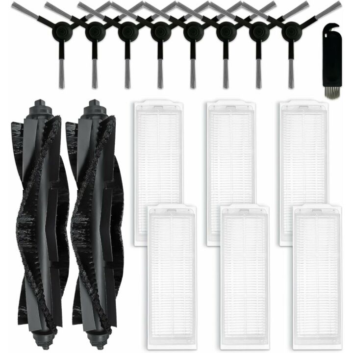 The kit includes 2 Main Brushes, 6 Hepa Filters, and 8 Side Brushes of high quality, comparable to original equipment manufacturer (OEM) parts. These components are designed to enhance cleaning efficiency and extend the life of your vacuum cleaner. Their high compatibility and quality make them a standout choice.