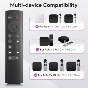Show moreDiscover the ultimate convenience with our Replacement Remote Control for Apple TV 4K/HD, designed specifically to enhance your viewing experience without the hassle of Siri and voice control. This remote not only offers a user-friendly design but also boasts compatibility with a variety of devices, including esteemed brands such as Samsung, LG, Vizio, Hisense, Sony, Amazon Fire TV, Toshiba, and Insignia. With this replacement remote in hand, there’s no need to breathe a sigh of frustration when a button stops responding; simply replace it with our budget-friendly option for seamless functionality.