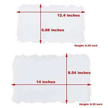 Show more Unleash your creativity and crafting potential with our stunning Geode Tray Molds, designed to amaze and inspire! These molds come in two versatile sizes: the larger mold (14 x 8.54 x 0.39 inches) holds about 600ml of resin, perfect for large serving trays, while the smaller mold (12.4 x 6.88 x 0.39 inches) comfortably accommodates a cup of coffee and a croissant. Crafted from premium silicone material, these molds feature a shiny surface that provides a magnificent mirror effect, ensuring that your finished products look professional and polished.