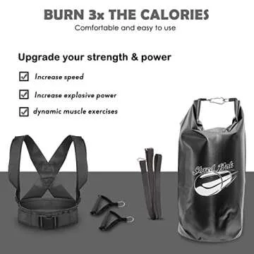 Resistance Training Sled - Weight Sled Harness & Handles - Extreme Workout for Athletes - Burn 3X The Calories - 4-Piece Kit for Gym, Home and, Outdoor (Weight Bag + Harness + Water Bladder)