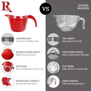 When compared to similar products on the market, the Reston Lloyd Batter Bowl stands out due to its unique ergonomic design and removable handle, offering superior convenience and functionality. While many bowls are made from cheaper, non-durable materials, this 2-quart bowl is crafted from robust, BPA-free materials that ensure longevity and safety for your family. The anti-skid base is another feature that sets it apart, providing stability that other bowls lack during the mixing process. Plus, the double-sided measurements eliminate the need for additional measuring cups, enhancing the overall cooking experience.