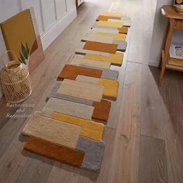 Show more Introducing the exquisite Restoration and Renovation Modern Colorful Palette Irregular Shape Runner – a stunning addition to your home decor collection. Handcrafted with passion, this unique area rug is made from 100% authentic wool, ensuring maximum durability and comfort underfoot. Spanning 2.6 feet by 8 feet, it is specifically designed to effortlessly enhance hallways, living rooms, bedrooms, or kitchens with its vibrant desert-inspired hues and captivating irregular shapes. Each piece is a masterpiece in its own right, making your space more than just a home, but a true reflection of your personal style and artistic flair. Imagine welcoming guests with a warm embrace of colors and textures that invite conversation and admiration.
