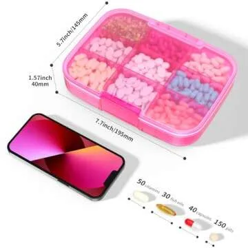 Restree Large Pill Organizer, Portable Pill Dispenser, Moisture-Proof Travel Pill Case for Vitamin, Medicine, Fish Oil/Supplements Extra Large 9 compartments (Pink)