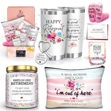 Show moreIntroducing a retirement gift set that perfectly encapsulates the celebration of a new chapter in life. This thoughtfully curated basket features a delightful 20oz insulated tumbler, a soothing lavender scented candle, cozy cotton socks, a charming keychain, a stylish cosmetic bag, and a thoughtful gift card, all elegantly presented in a beautiful gift box. Designed specifically for women, this set makes for a unique retirement gift that conveys love and appreciation for the special retiree in your life. Whether it's for a colleague, friend, boss, teacher, nurse, mom, grandma, or any retiree, this gift box is bound to bring joy and smiles.