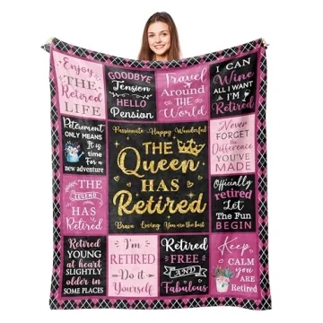 Show moreRetirement Gifts For Women is more than just a product; it's a heartfelt gesture that celebrates the transition from a professional career to cherished leisure time. This stunning blanket, specially designed with retired women in mind, encapsulates warmth, love, and the wishes of beauty, health, and happiness for her future. With dimensions of 50 inches x 60 inches, it provides an ample embrace for relaxation, ensuring comfort for any retired woman. Crafted from high-quality fabric, the blanket is soft against the skin and perfect for all-day use, whether she is cozying up on the sofa, enjoying a good book, or simply taking in a cool evening breeze while sitting outside.