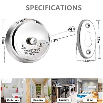 Show more Introducing the ultimate solution for efficient laundry drying, the retractable clothesline by a trusted brand known for its commitment to quality. This **flexible and adjustable** clothesline is designed to hold a maximum weight of 11 lbs and can extend up to a remarkable 9.2 ft. With a convenient lock button, you can customize the length to suit your needs, making laundry chores **easy and adaptable** to any space. It’s not just for outdoors, but perfect for indoor use as well!