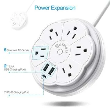 Retractable Power Strip, 5 Outlet Flat Plug Strip with Smart USB Ports and Type-C Port, 900J Surge Protector, 125V/13A, 3.3ft Retractable Extension Cord, Portable & Neat for Travel/Home/Office, White