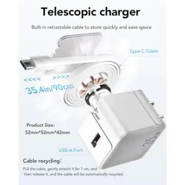Retractable Wall Charger,35W PD Fast USB C Charger Block with Retractable Type-C Cable,Portable Charger Fast Charging Adapter with Foldable Plug for iPhone 16/15,iPad Pro 13,12.9,11 inch,Galaxy,Pixel