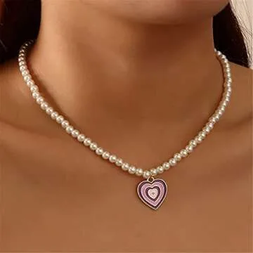 Retro Enamel Gradient Color Heart-shaped Pendant Necklace for Women - Colorful Faux Pearl Beaded Chain Jewelry Gift
