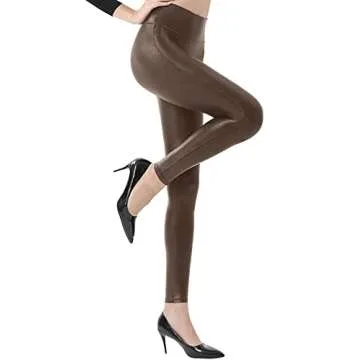 Retro Gong Womens Faux Leather Leggings Stretch High Waisted Pleather Pants Brown
