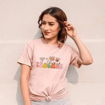 Retro Groovy Teacher Shirt Women Teacher Floral Tee Teach Them Love Them Watch Them Grow Shirt Flower Teacher Shirt