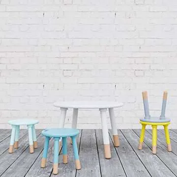 Retro Wooden Mid Century Kids Table and Chair Set - Farmhouse Toddler Table and Chair Set - Kids Circle Table for Kids - Toddler Round Table and Chairs