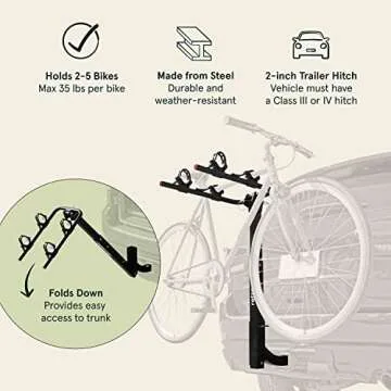 Retrospec Lenox 2-5 - Bike Hitch Rack for Cars, Trucks, SUVs with 2” Hitch | Foldable Steel Frame with Anti-Rattle Adapter, Tie Down Cradles and Straps - Fits Most Frames, Black