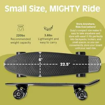 Retrospec Quip Mini Cruiser Skateboard 22.5" and 27" Classic Retro Plastic Cruiser Complete Skateboard with ABEC 7 Bearings and PU Wheels Compact Board with Grippy, Molded Waffle Deck